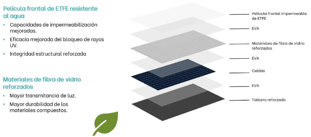 Peso 3,5 kg/m2 unicamente el 30% de los paneles tradicionales