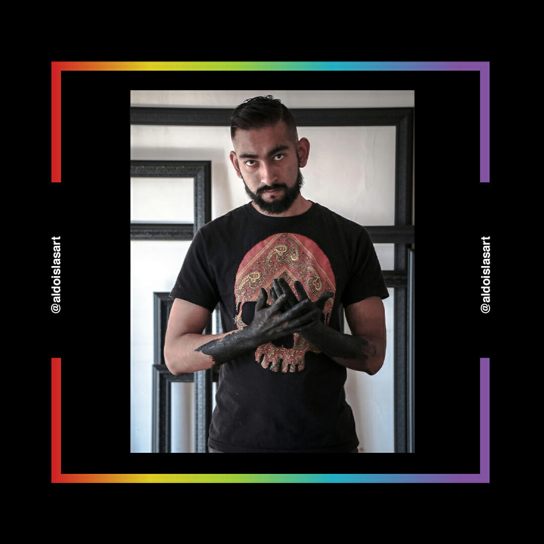 Aldo es un diseñador industrial cuya inspiración proviene de las emociones humanas, la naturaleza y, algo a lo que todos estamos pendientes, el internet; todo esto lo ha logrado plasmar por medio de la pintura.